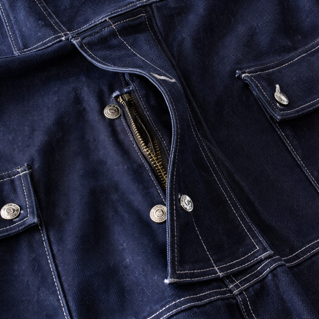 Un denim bleu profond sublimé par des coutures contrastées et des détails métalliques raffinés. Une allure authentique, une qualité supérieure et un style affirmé pour un look qui ne passe pas inaperçu.