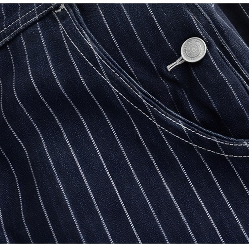 Affirmez votre style avec cette pièce en denim rayé au caractère unique et aux finitions impeccables. Une coupe tendance, un tissu résistant et un look intemporel qui sublime chaque tenue au quotidien.